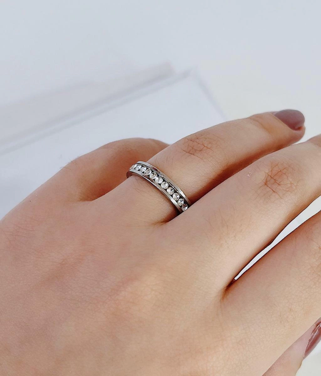 DESCRIÇÃO: A Aliança Cravejada Aço Inoxidável é a combinação perfeita . Com um design sofisticado, esta aliança é cravejada com pedras que refletem luz, trazendo um brilho sutil e elegante para qualquer ocasião.