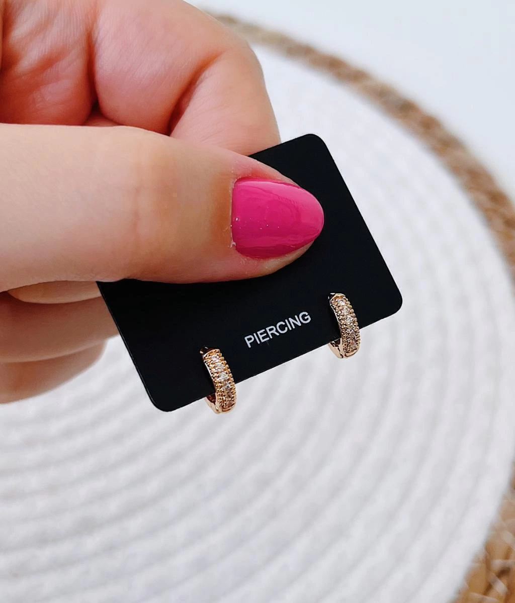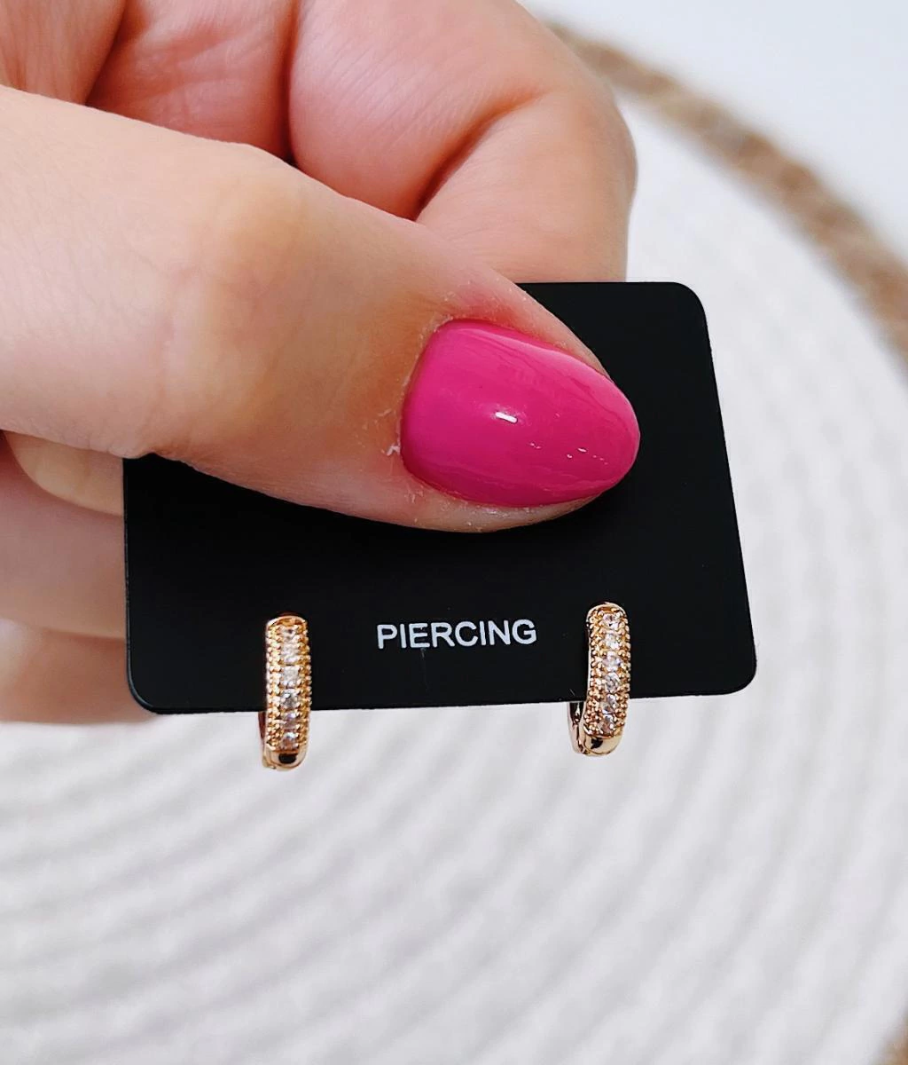 Argola Piercing Cravejada Dourada é o acessório que adiciona um toque de luxo e brilho ao seu visual. Com suas pedras delicadamente cravejadas, essa argola dourada destaca-se pela sofisticação e estilo único, ideal para quem busca realçar a beleza com elegância.