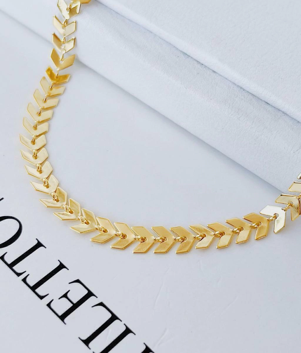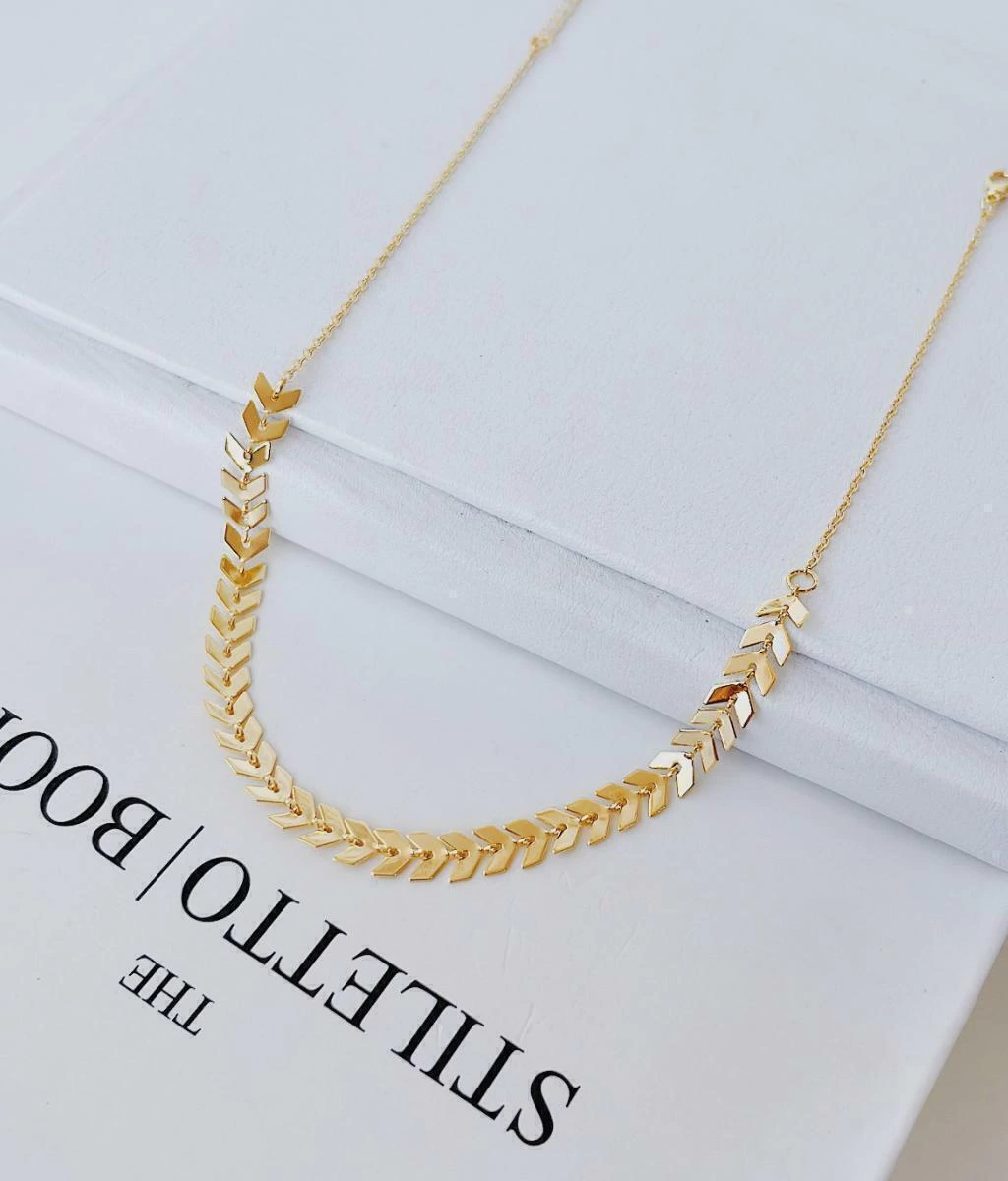 A choker é composta por um design de setas resinadas. O acessório é uma obra de arte, com um brilho único que torna a peça única!