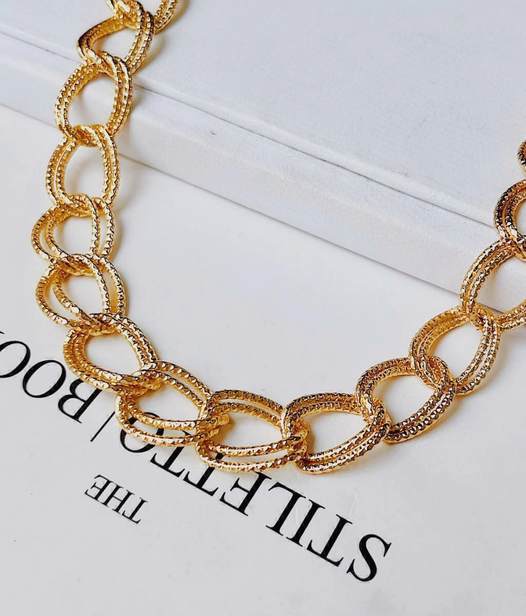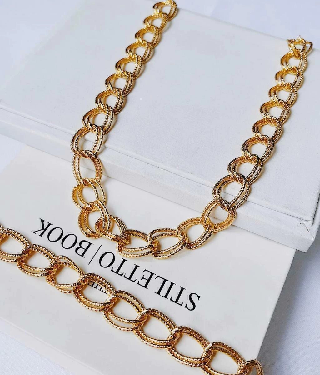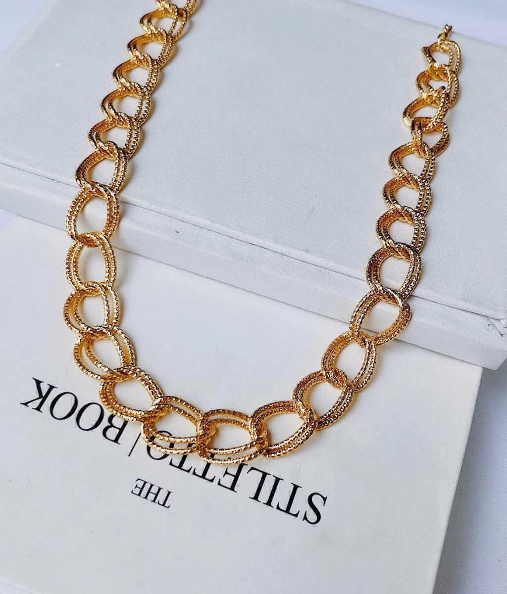 O Colar Correntaria Elos Duplos é uma peça indispensável para quem busca sofisticação e estilo. Com uma malha de elos entrelaçados, ele traz um toque moderno e ao mesmo tempo clássico, ideal para compor looks variados. Este colar é uma verdadeira expressão de elegância, perfeito para ser utilizado em diversas ocasiões, seja em um jantar especial ou no dia a dia.