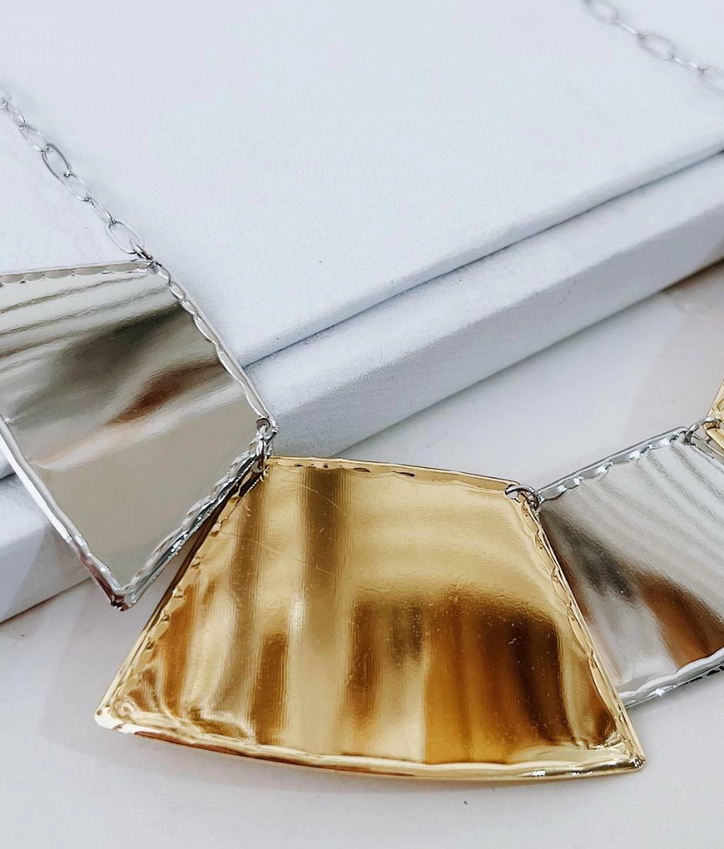 DESCRIÇÃO: O Colar Placas Maxi é a peça perfeita para quem busca um acessório imponente e cheio de estilo. Com design moderno , ele se destaca no seu visual, seja no dia a dia ou em ocasiões especiais. Uma bijuteria que combina versatilidade e sofisticação para realçar sua personalidade.