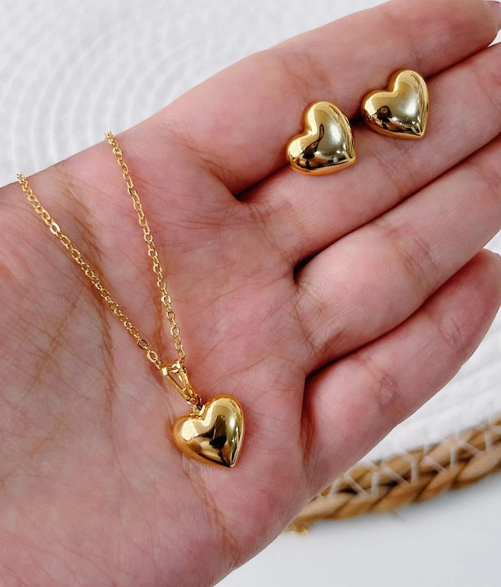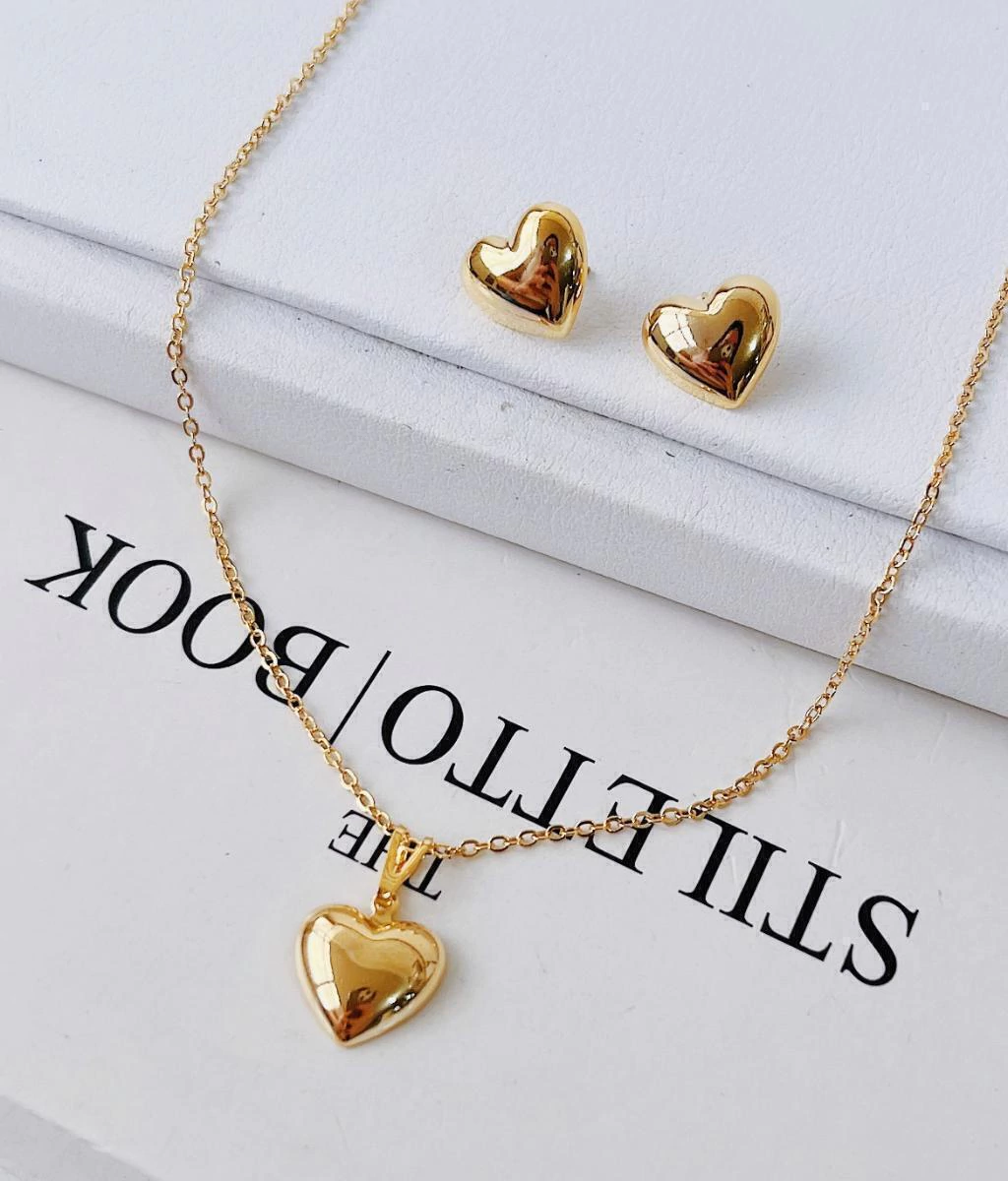 O Conjunto Coração Folheado a Ouro 18K é a escolha perfeita para quem deseja expressar amor e elegância em um só acessório. Com um design delicado e romântico, este conjunto irradia brilho e sofisticação, ideal para complementar seu estilo em qualquer ocasião especial.