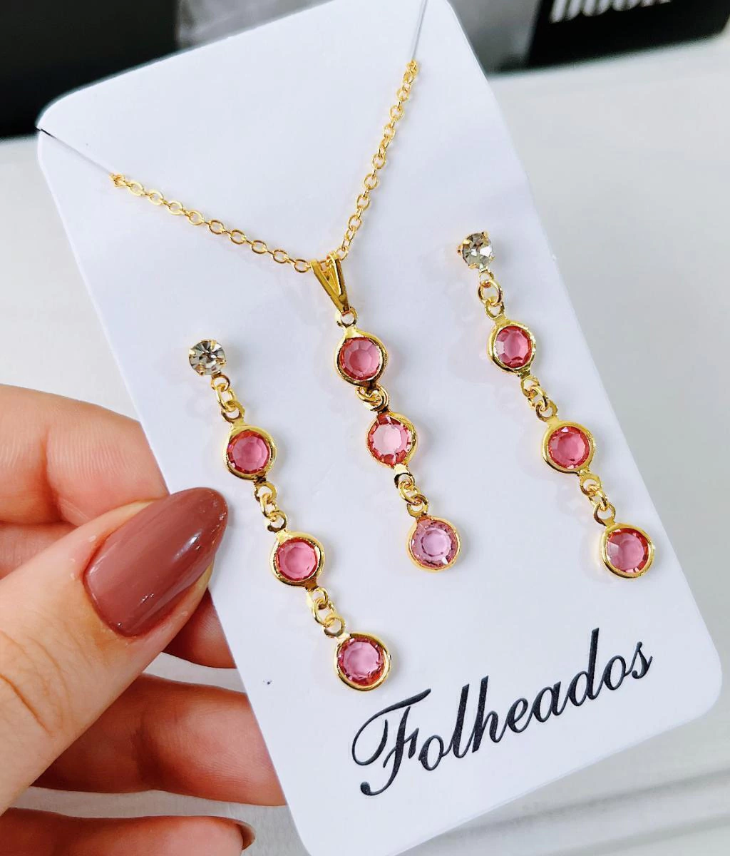 Encante-se com o nosso Conjunto Cristais, composto por um colar e um par de brincos que trazem um brilho único e sofisticado para o seu visual. Perfeito para ocasiões especiais ou para dar um toque de elegância ao dia a dia, este conjunto é a escolha ideal para quem valoriza estilo e delicadeza.