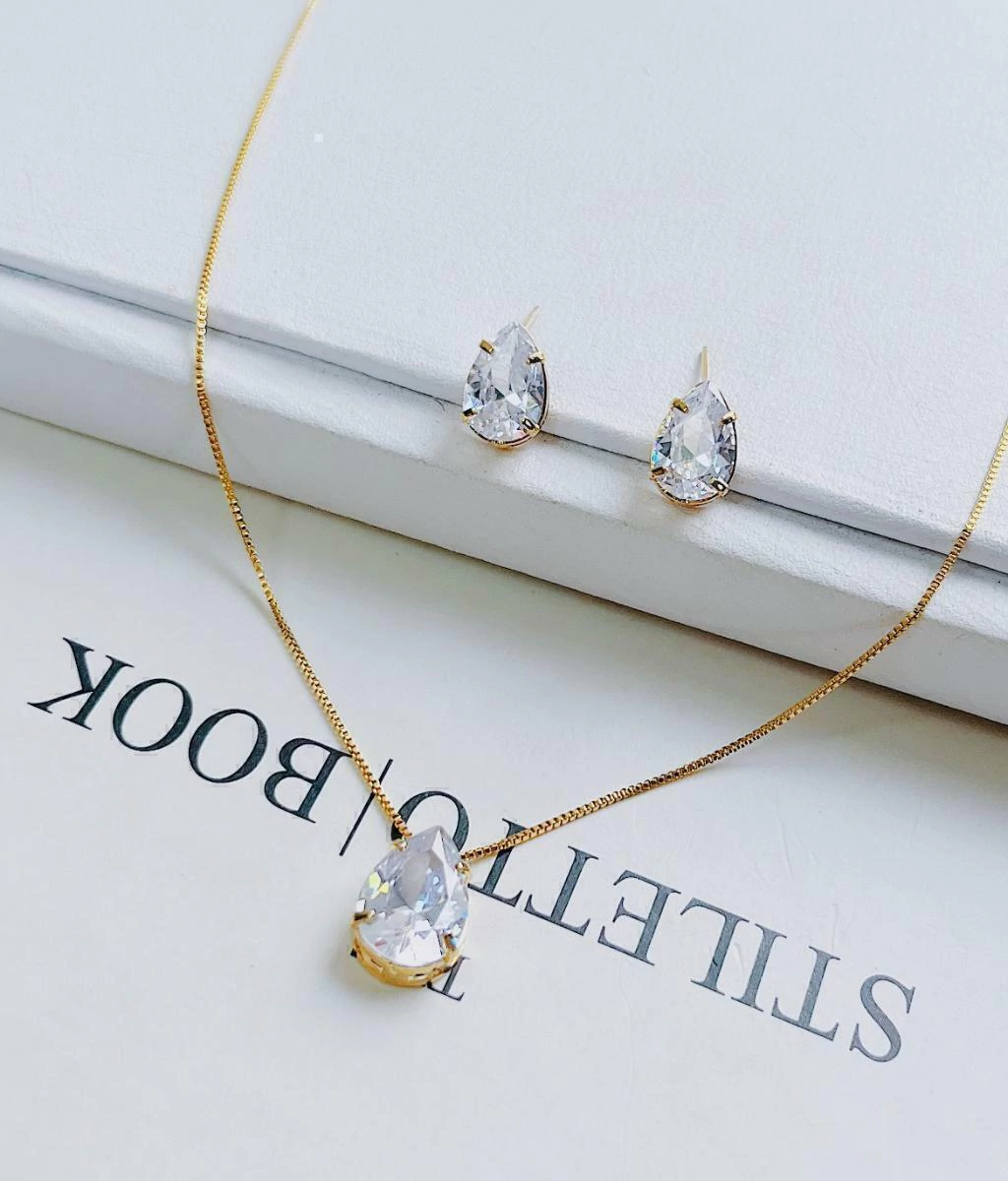 O Conjunto Gota Folheado a Ouro 18K é a escolha perfeita para quem aprecia elegância e sofisticação. Composto por um pingente em formato de gota com pedra e um par de brincos que seguem o mesmo design de gota, este conjunto traz um brilho único e um toque de glamour a qualquer visual.