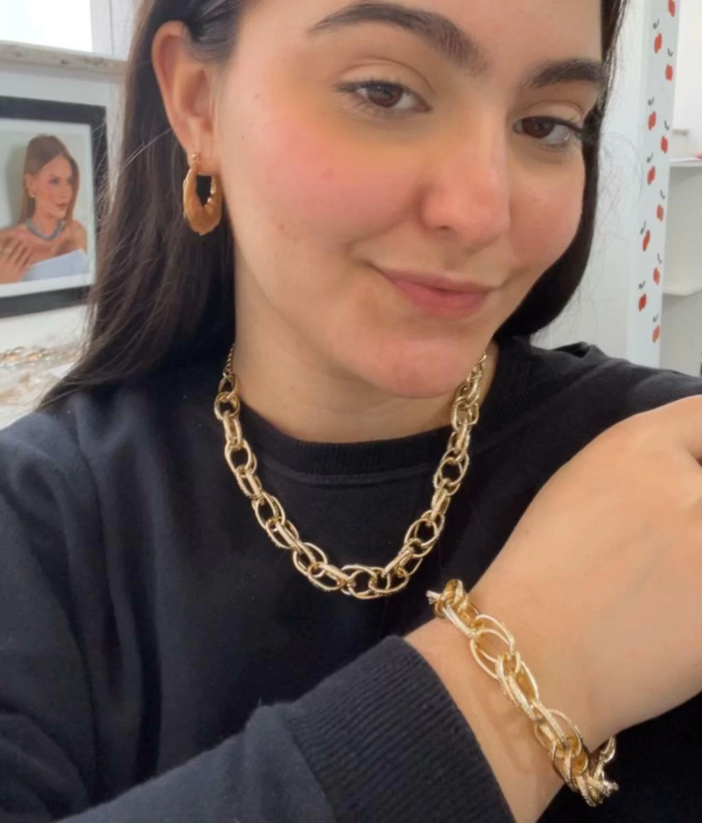 O Pulseira Correntaria Elos Martelado Folheado a Ouro 18k é a combinação perfeita de elegância e modernidade. Seus elos martelados refletem a luz de forma única, proporcionando um brilho sofisticado e irresistível. Ideal para quem deseja um acessório versátil, que realça qualquer look com charme e personalidade.